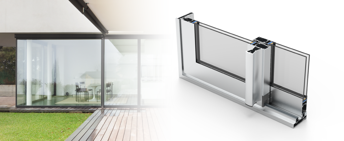 • Ventana y puerta alzante con marco a 90° y hoja 45° de 2, 3, 4 y 6 hojas